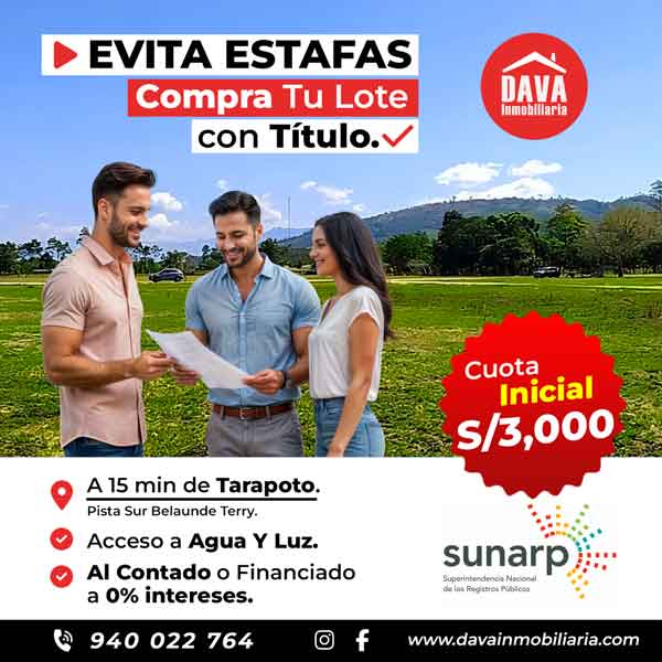 Desde 140 m2, Acceso a Agua Y Luz, A 15 Min de Tarapoto, FACILIDADES DE PAGO.